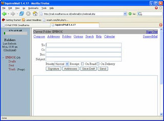 Inbox. Jika terlihat angka satu (1) maka pesan yang kamu terima sebanyak satu buah surat. Dalam tampilan login, selain terdapat kotak surat (Inbox) j uga terdapat draft, surat yang telah dikirim (Sent), surat yang terkena spam (Bulk), dan surat yang telah dihapus (Trash).